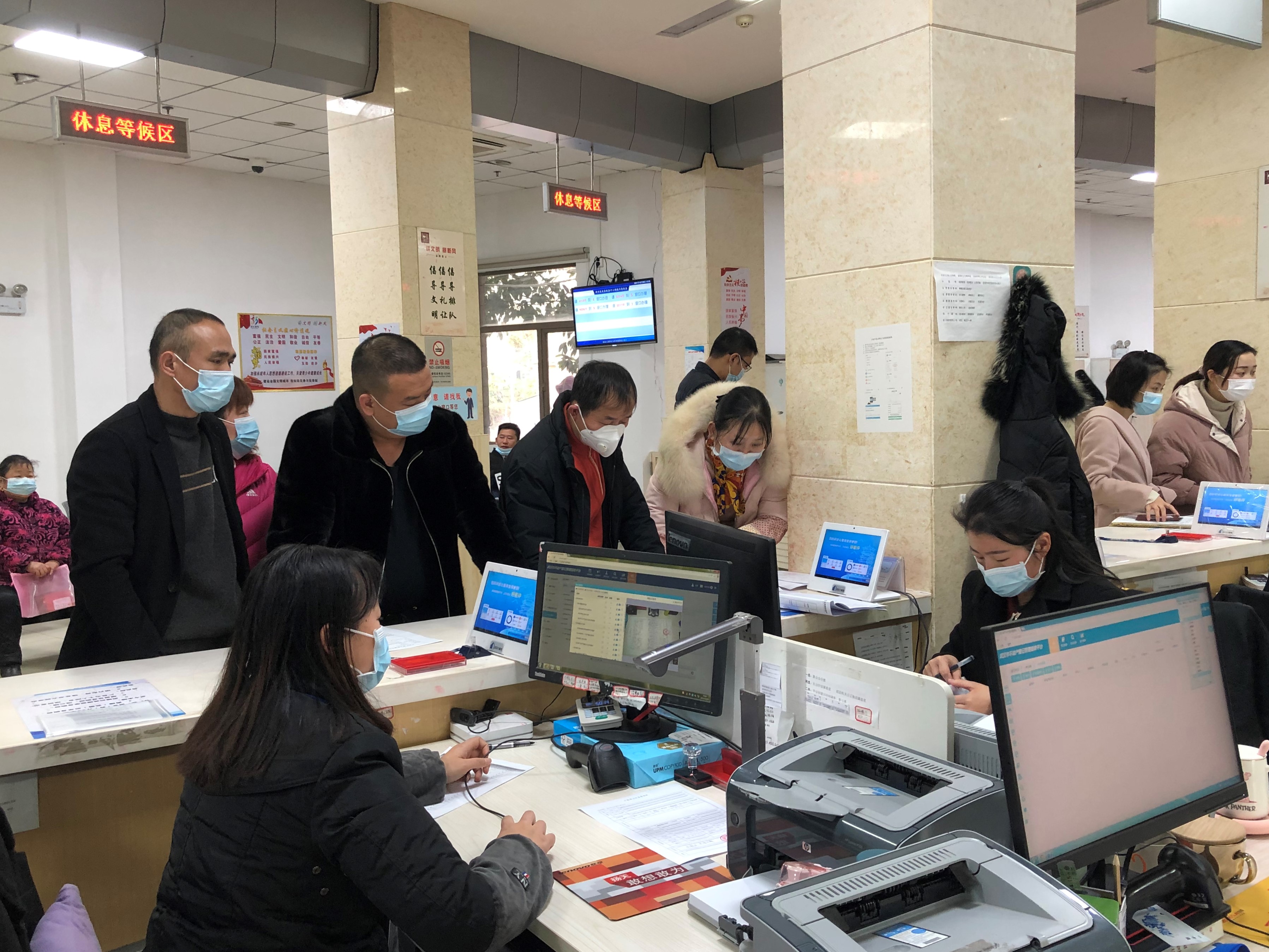 12月29日下午17:00,正值下班時間,武漢農(nóng)村商業(yè)銀行新洲支行代理人與7戶自然人一道,急迫地來到新洲區(qū)不動產(chǎn)登記中心辦理7個抵押登記,為武漢慈航優(yōu)撫中西醫(yī)結(jié)合醫(yī)院融資貸款。據(jù)了解,該單位因資金流轉(zhuǎn)不暢,急需不動產(chǎn)證明放款,時間緊迫,恰好7名義務(wù)人能夠全員到齊,所以希望新洲區(qū)不動產(chǎn)登記中心能夠給予支持,辦理抵押業(yè)務(wù)。