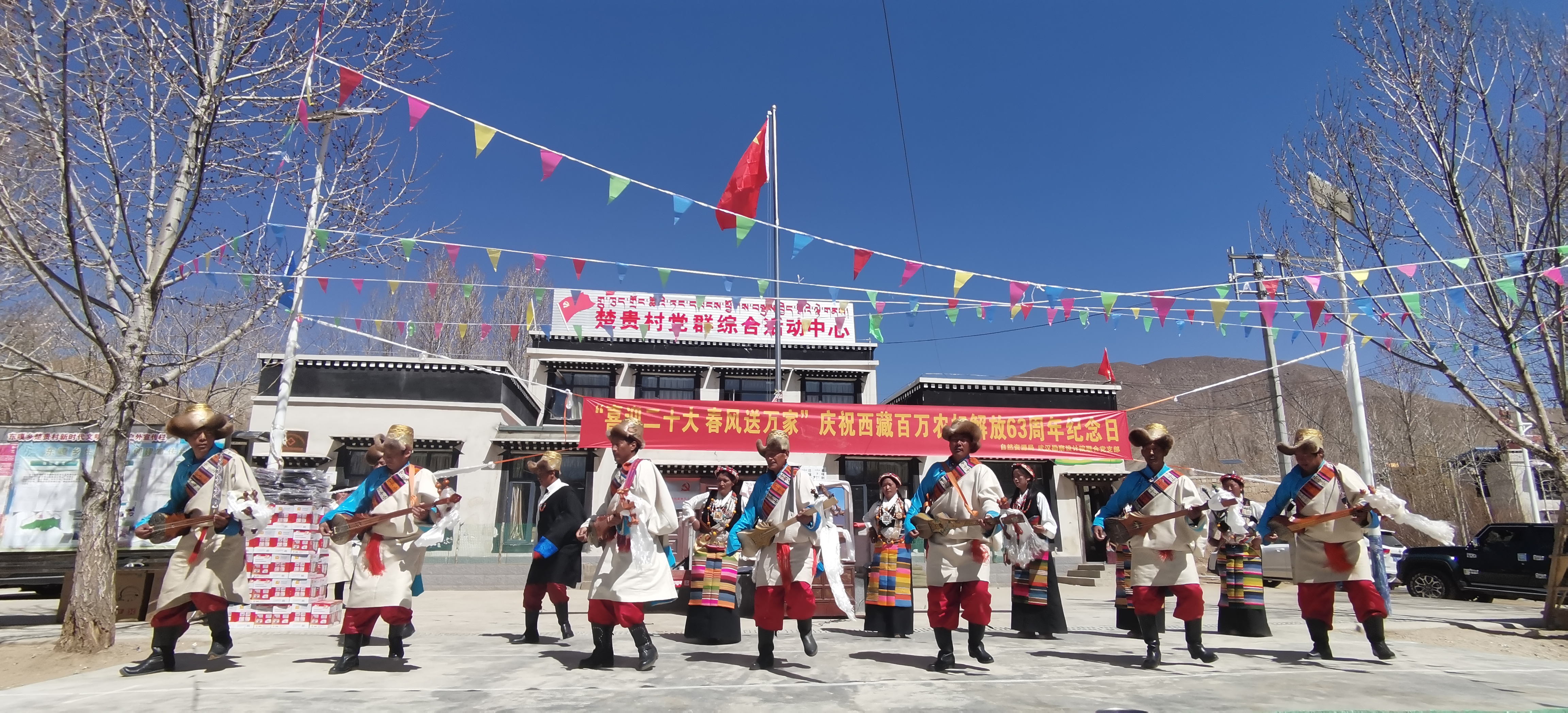 為慶祝西藏百萬(wàn)農(nóng)奴解放63周年,充分展現(xiàn)西藏民主改革以來(lái)社會(huì)經(jīng)濟(jì)發(fā)展取得的突出成就,3月27日上午,項(xiàng)目黨員突擊隊(duì)參與了桑珠孜區(qū)自然資源局、東嘎鄉(xiāng)楚貴村黨支部及駐村工作隊(duì)聯(lián)合開(kāi)展“建設(shè)美麗幸福西藏,共圓偉大復(fù)興夢(mèng)想——紀(jì)念西藏百萬(wàn)農(nóng)奴解放63周年”聯(lián)合主題黨日活動(dòng)。